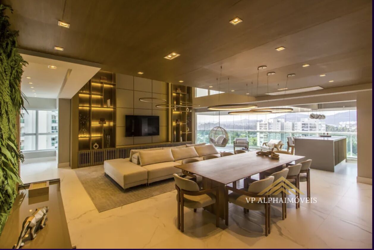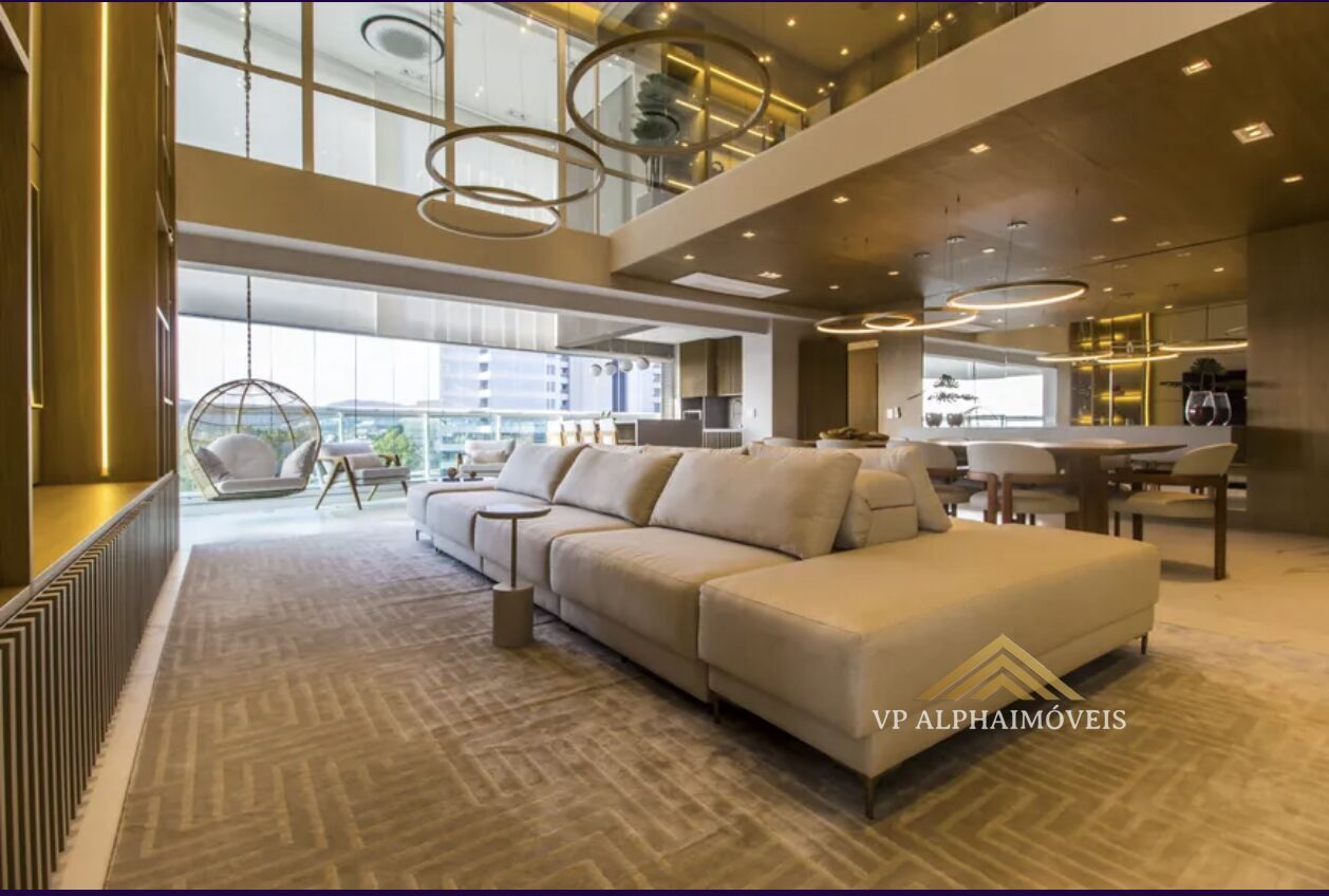 Apartamento andar alto de 376m2 totalmente decorado com elevador de acesso privativo, ar condicionado em todos ambientes, varanda gourmet integrada com vista para o parque com muito verde e com acesso direto por dentro do condomínio ou por uma rua exclusiva, trazendo conforto e segurança para os moradores. Sala com pé direito duplo personalizado com um mesanino aproximado de 40m2.