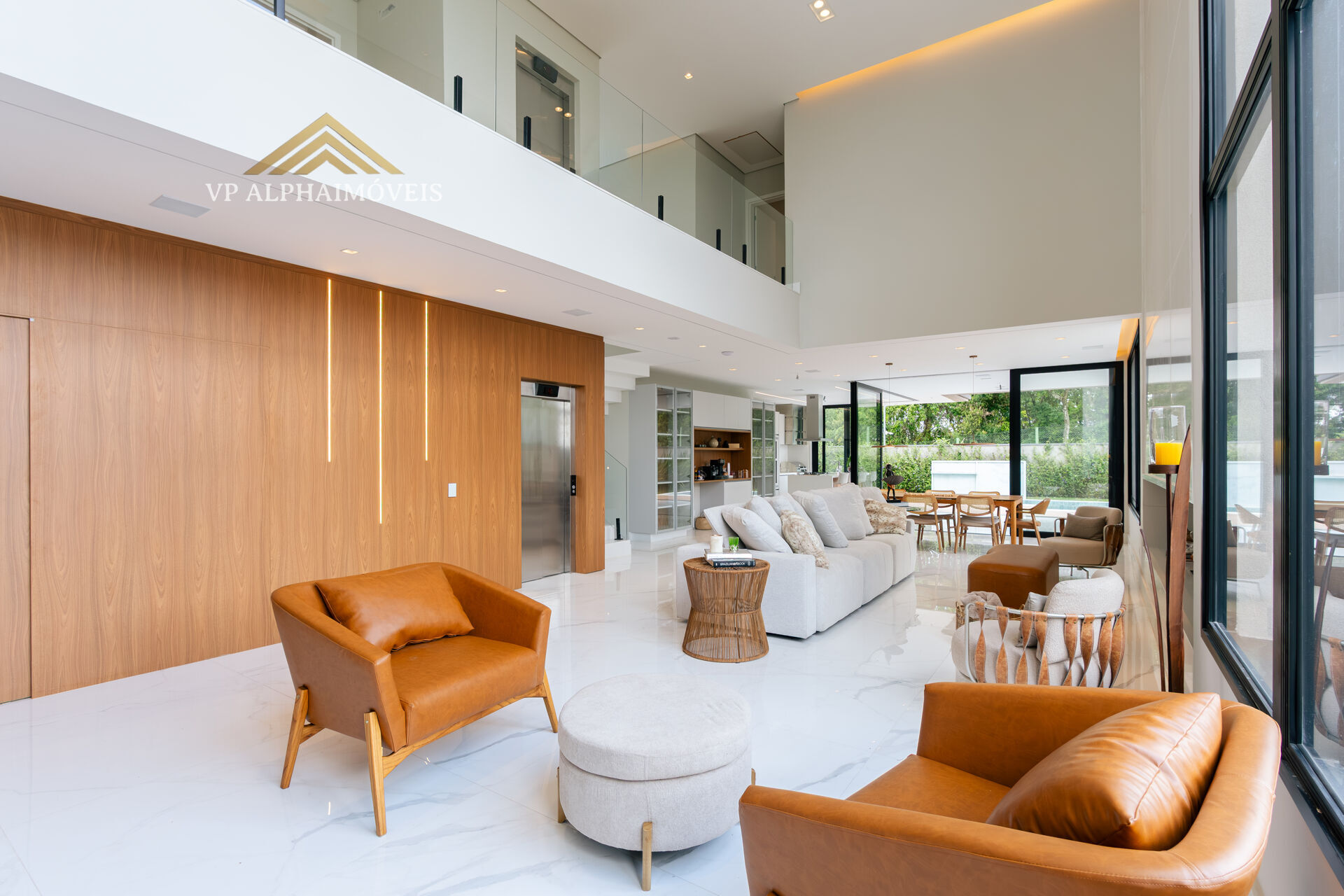 • Planta integrada, com living de entrada imponente, pé-direito duplo, sala com lareira a