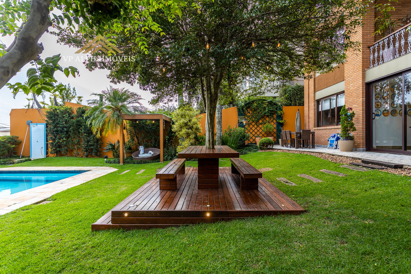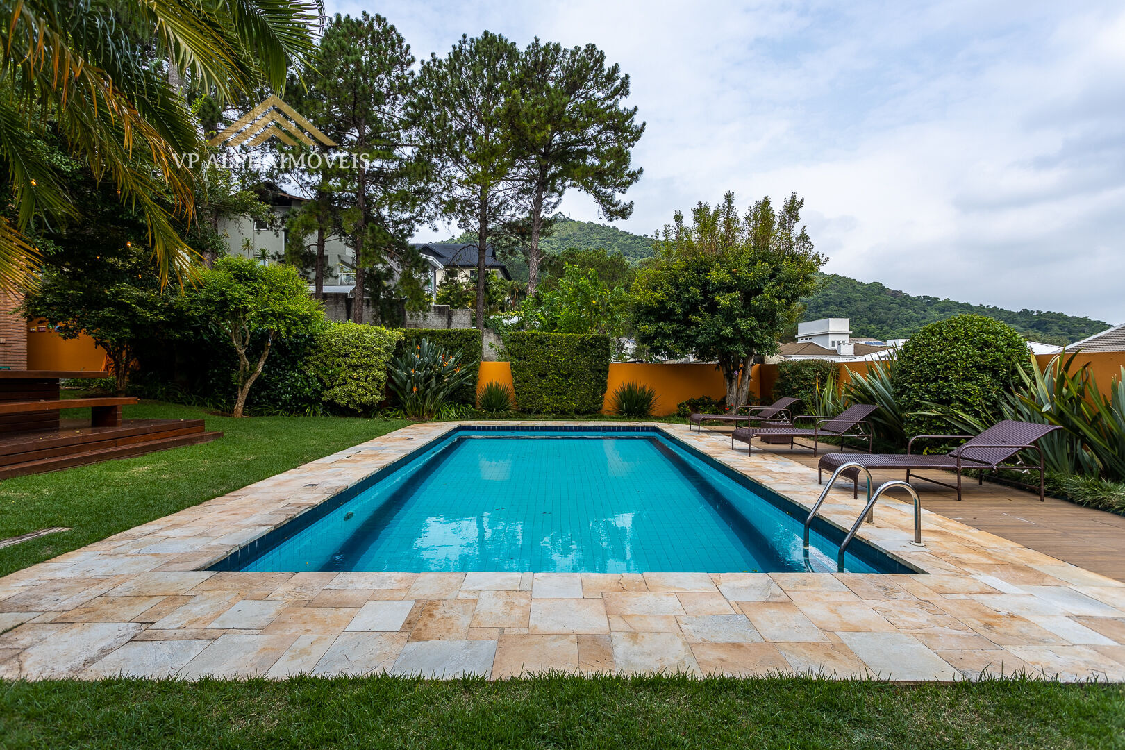 • Piscina aquecida com prainha, deck em madeira sintética e hidromassagem para 10 pessoas