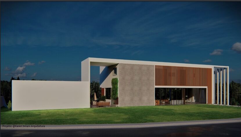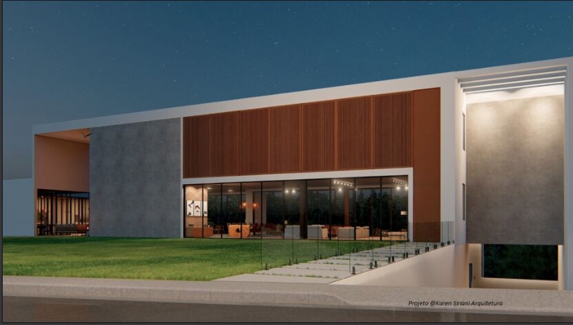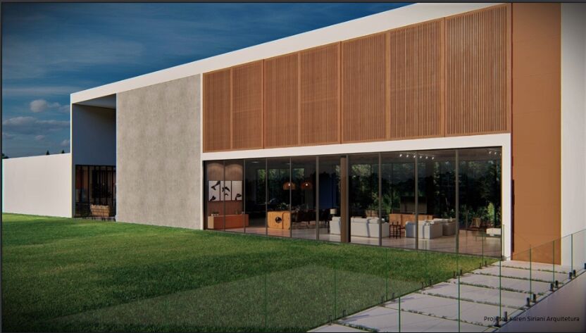 Fachada imponente, projeto alia ambientes integrados e clean, porém também é integrado com a natureza, com absoluta privacidade. Em função da localização do imóvel ser em um terreno de declive, com ampla vista livre verde, e a construção ser alta, ela possui vista livre para toda uma área verde preservada, com incidência de Sol todo o dia, todo o pavimento térreo, e o pavimento superior onde estão as suítes estão integrados à paisagem verde, tornando esta residência exclusiva.