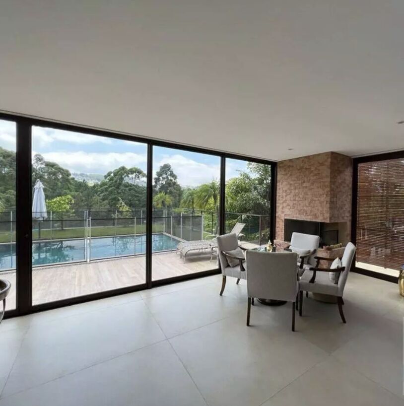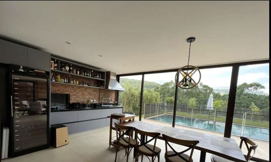 6 suítes com ar condicionado e armários, suíte master com sala de banho e um excelente walk-in closet, banheira de hidromassagem, suíte de funcionário, amplo living para vários ambientes como sala de estar, sala de jantar e sala de TV, ar condicionado, cozinha com ilha coifa que pode se integrar ou não ao living principal, área de serviço com lavanderia, escritório, área gourmet com lareira e fechamento em vidro para os dias mais frios, churrasqueira, lazer com piscina aquecida com deck molhado, jardim com arvores frutíferas, sauna seca, SPA, brinquedoteca, sala de ginastica, mini campinho de futebol e 4 vagas cobertas de garagem, além das vagas descobertas.
