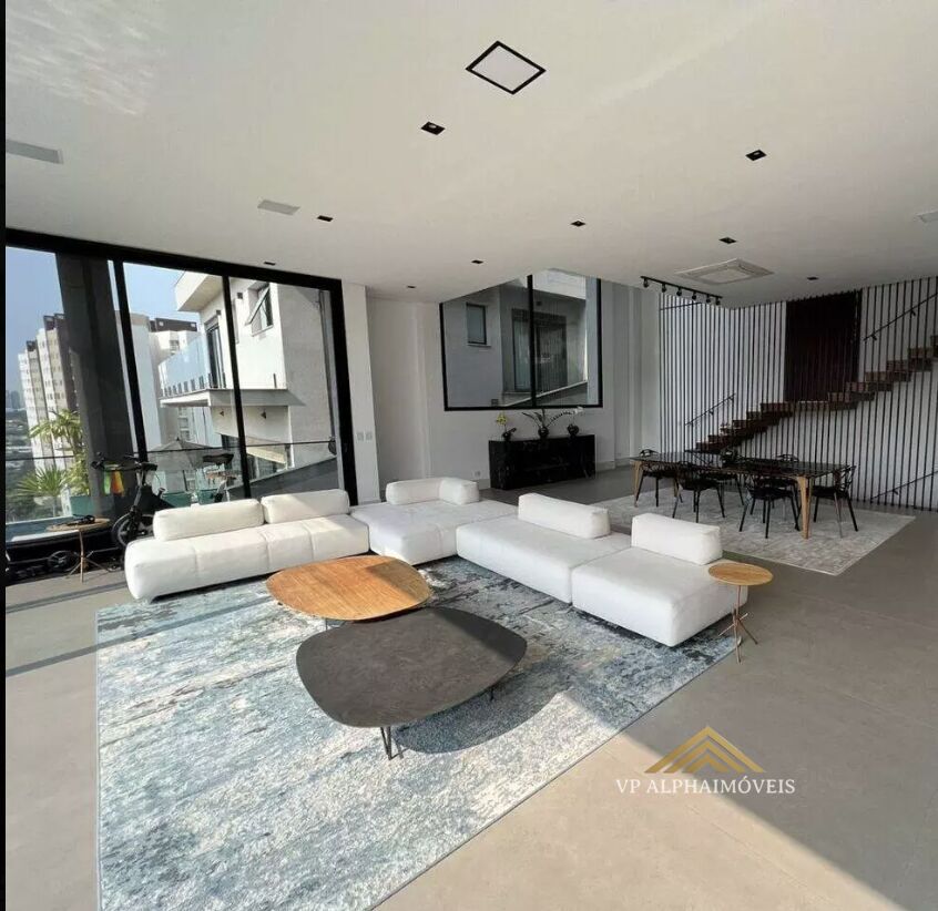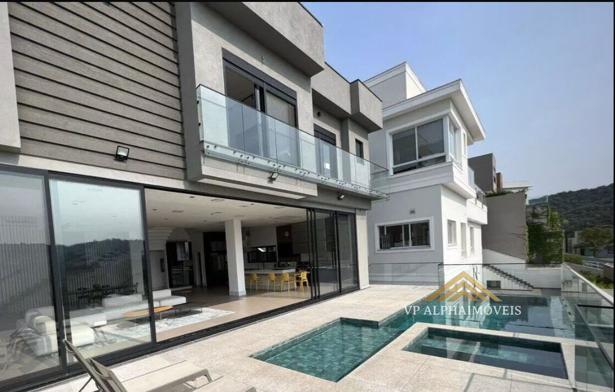 482 m² de área útil e 554 m² de área total, 4 suítes repletas de armários, ar condicionado quente/frio (inverter) e persianas elétricas automatizadas, suíte master com closet fechado e banheira esculpida na pedra, living com é direito duplo e para três ambientes como sala de estar, sala de jantar e sala de TV, frente em vidro com vista panorâmica, piso em mármore travertino importado no Hall entrada, lavabo, área de serviço com lavanderia, escritório completo de marcenaria com copa exclusiva e teto ripado, ar condicionado automatizado quente e frio em todos os ambientes, sistema de automação completa da casa pré instalada, preparação do home com TV e tela de 120 polegadas, sistema Dolby Athmos com 8 alto-falantes, sala de jantar e espaço gourmet com sistema de som integrado com caixas importadas, cozinha gourmet integrada aberta repleta de armários com frente em vidro, espaço gourmet integrado com TV, churrasqueira a gás e carvão, banheiro de colaborador, quarto de apoio na cozinha, louças Deca, box nos banheiros até o teto, piscina com borda infinita 6m por 3m, com prainha e SPA, aquecimento solar e trocador de calor, iluminação LED, sistema automatizado, preparação para CFTV, preparação para sauna e ducha, garagem coberta com capacidade para 3 carros, preparação para deposito de 100 m², projeto luminotécnico interno e externo em LED instalado, aquecimento solar com 800l água quente, casa inteira com sistema hidráulico pressurizado, caixas d´água com total capacidade de 10.000l de água, sistema de captação de água de chuva (para as privadas e quintal) com cisterna com 10 mil litros capacidade, preparação para sistema de automação completo (Iluminação, ar-condicionado, fechadura digital, sistema de alarme, lareira automação piscina) com controle via celular, tablet ou voz (Amazon Alexa), sistema energia fotovoltaico para geração de luz com Enel e estimativa de custo zero e retorno de crédito na para utilização em outro código de instalação, matérias de alto nível em todo imóvel, porcelanatos e revestimentos Portinari, piso e escadas em madeira Cumaru, portas maciças e fechaduras Pado