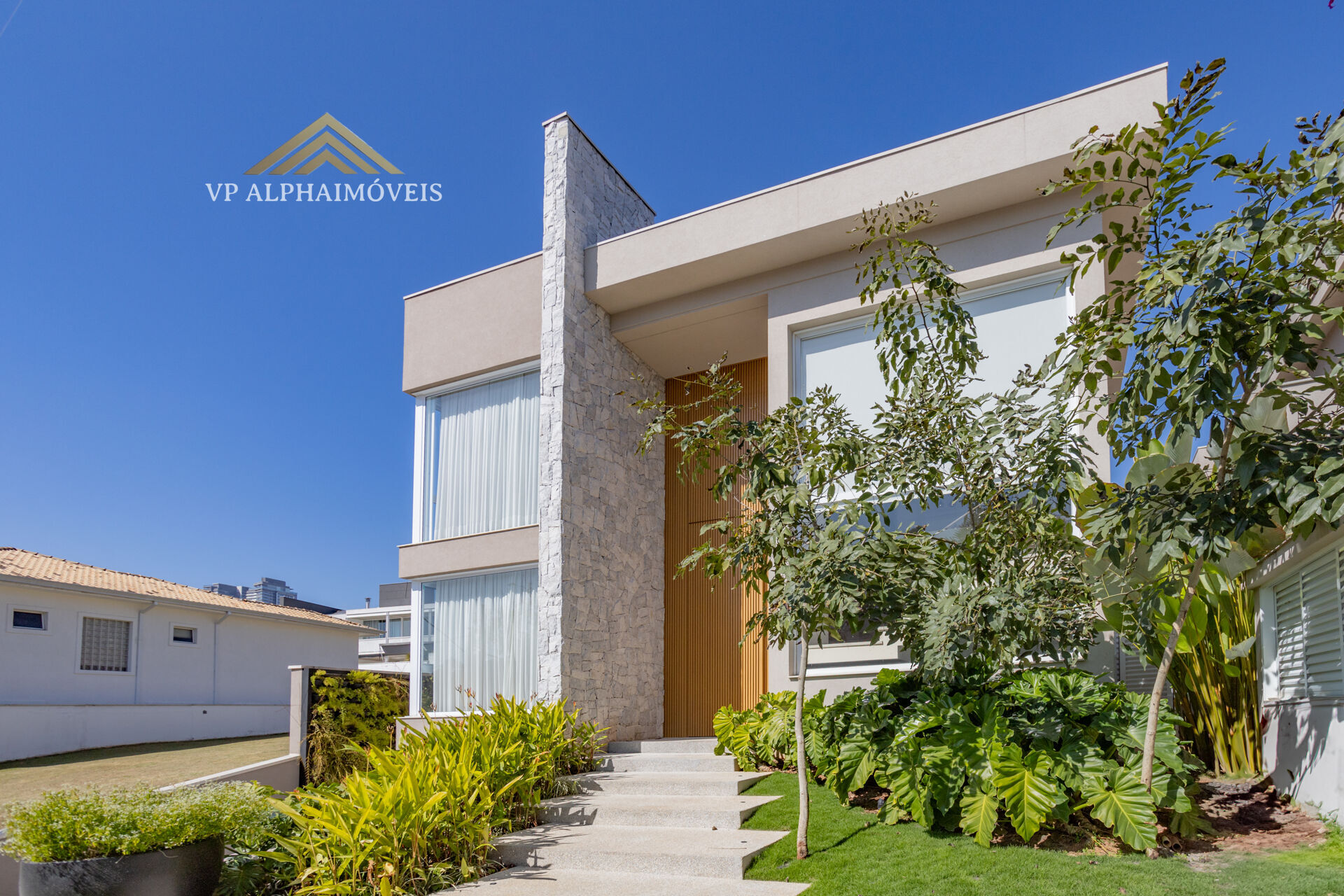 Localizada no exclusivo Condomínio Conde II, esta residência une arquitetura autoral,