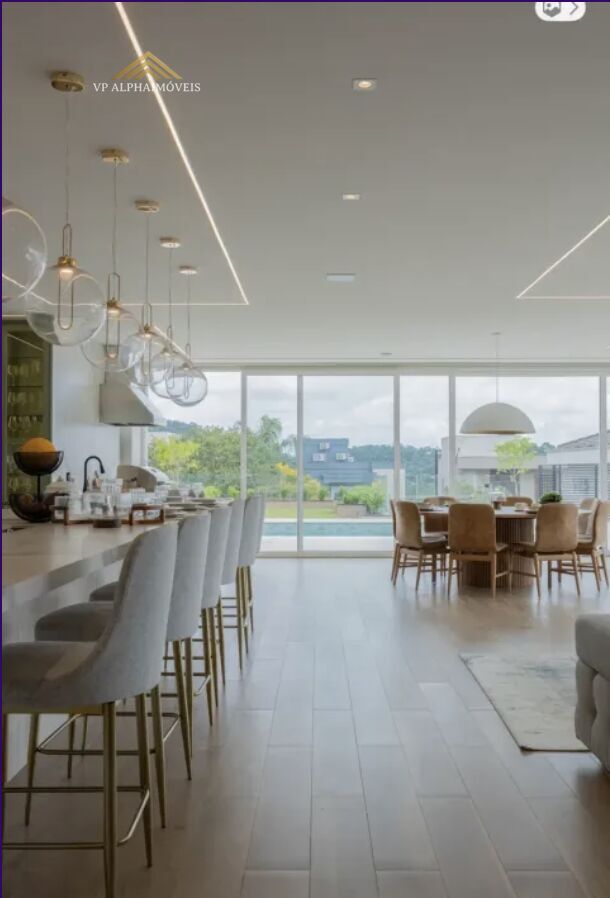 7 suítes, living, sala de estar, cozinha, área gourmet, piscina, garagem para 8 veículos.
