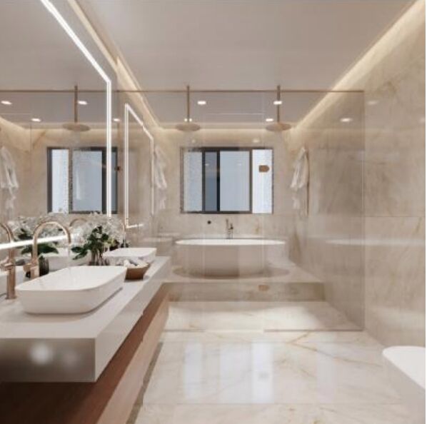 5 suítes, sendo 1 suíte no térreo (pode ser utilizada para escritório ou home). A suíte máster possui em torno de 50 m² .