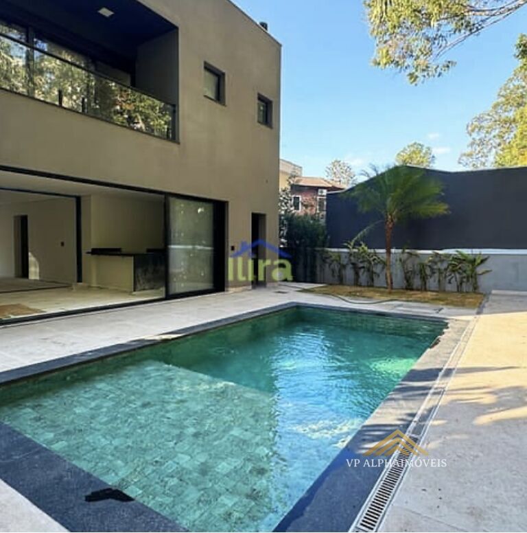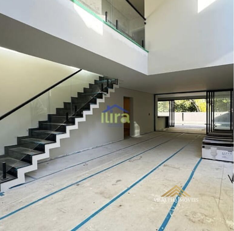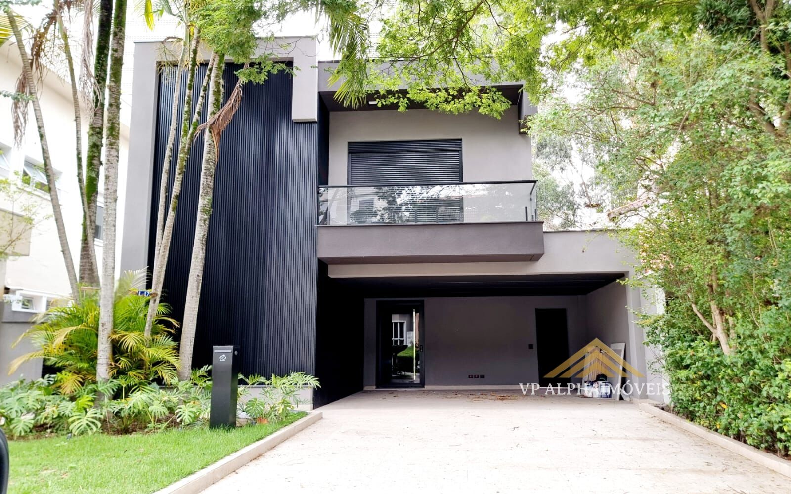. No total são 6 suítes sendo a master com amplo closet e sua varanda com vista para área verde e piscina, ( 4 suítes no pavimento superior e duas no pavimento térreo, persianas automatizadas e climatizadas, hall, living para 3 ambientes integrada à área gourmet, lavabo, cozinha (eletrodomésticos), sala de almoço, home office. Além de tudo isso a área gourmet conta com piscina, banheiro de piscina, dependência para auxiliares, depósito e muito verde em torno da área desse imóvel. São 4 vagas sendo 02 cobertas, tomada para carro elétrico. Infra estrutura para instalação de placas fotovoltaícas (geração de energia) O imóvel será entregue com todos com armários planejados.