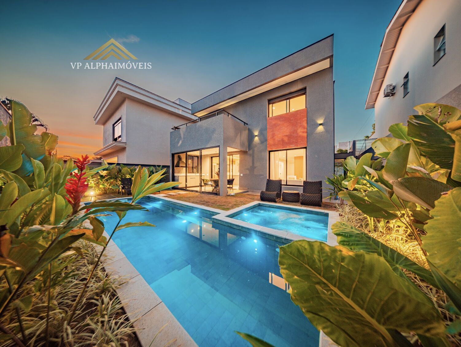 Residência contemporânea recém-construída, com excelente padrão de acabamento, ambientes integrados e tecnologia em cada detalhe. Projeto moderno em terreno plano, com fachada elegante e paisagismo completo.