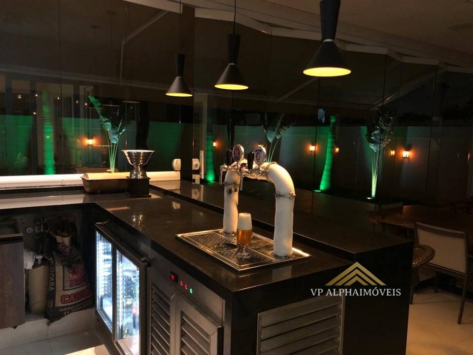 Área de lazer varanda fechada com abertura total em vidro, churrasqueira e choppeira trave com 2 bicos e balcão refrigerado para 2 barril de 50L e cervejeira, e toldo retrátil elétrico.
