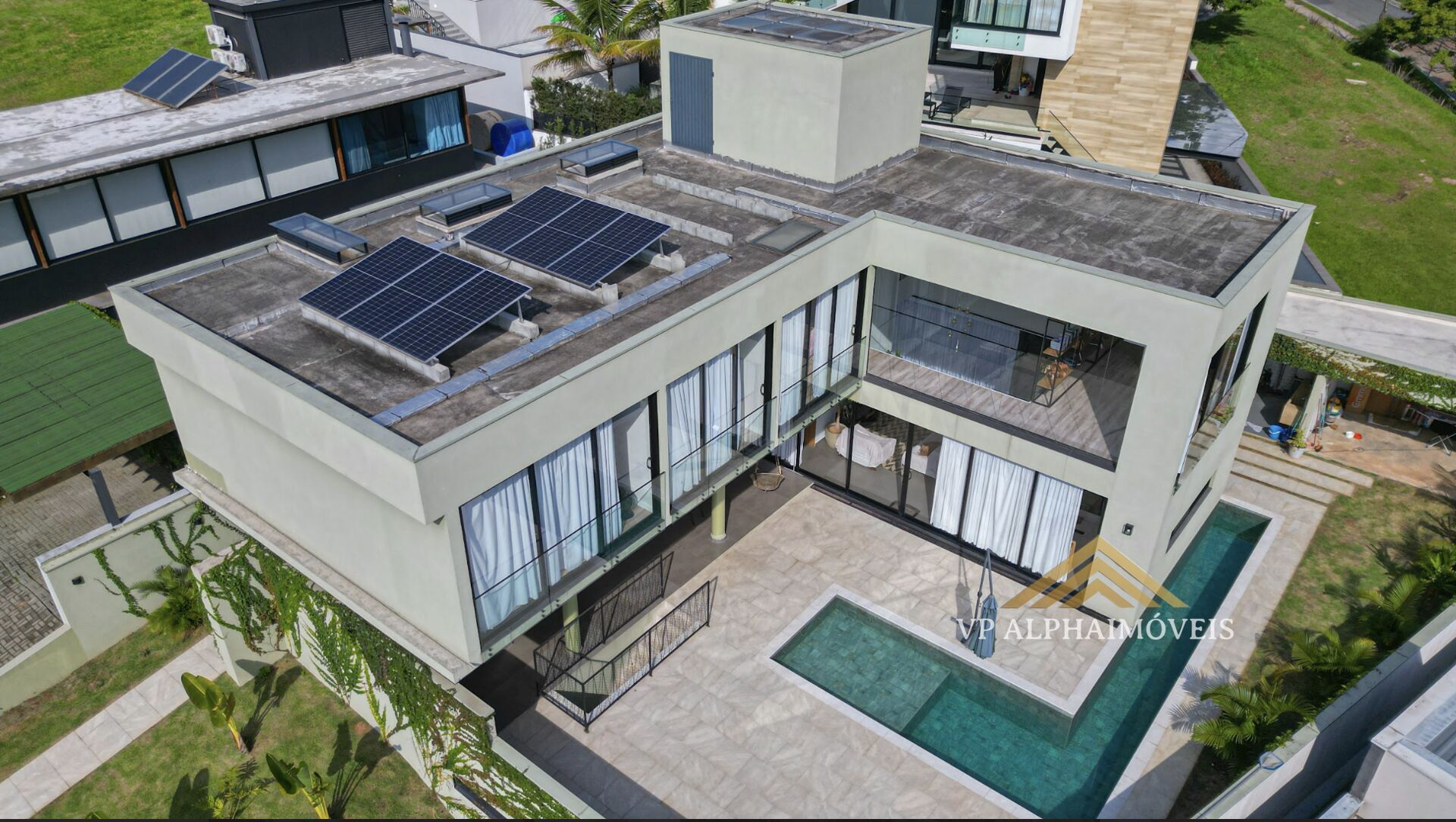A casa será entregue totalmente mobiliada incluindo eletroeletrônicos, suítes com estrutura de ar-condicionado, sendo 2 já com a instalação do ar realizadas. Escritório no primeiro pavimento, sala com pé direito duplo integrada com a área de lazer e cozinha estilo americana.