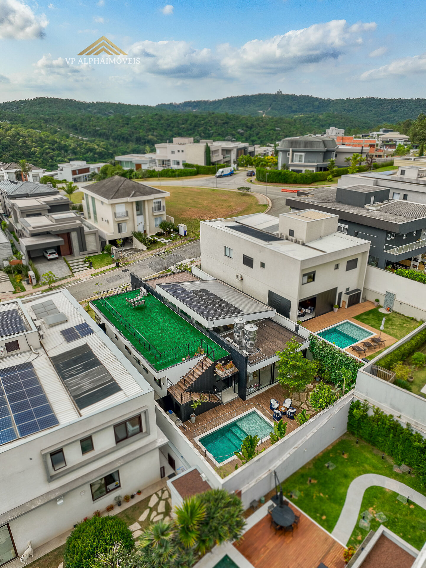 Condomínio clube, com quadra de Tênis, Poliesportiva , campo de grama artificial e quadra de beach tênis.