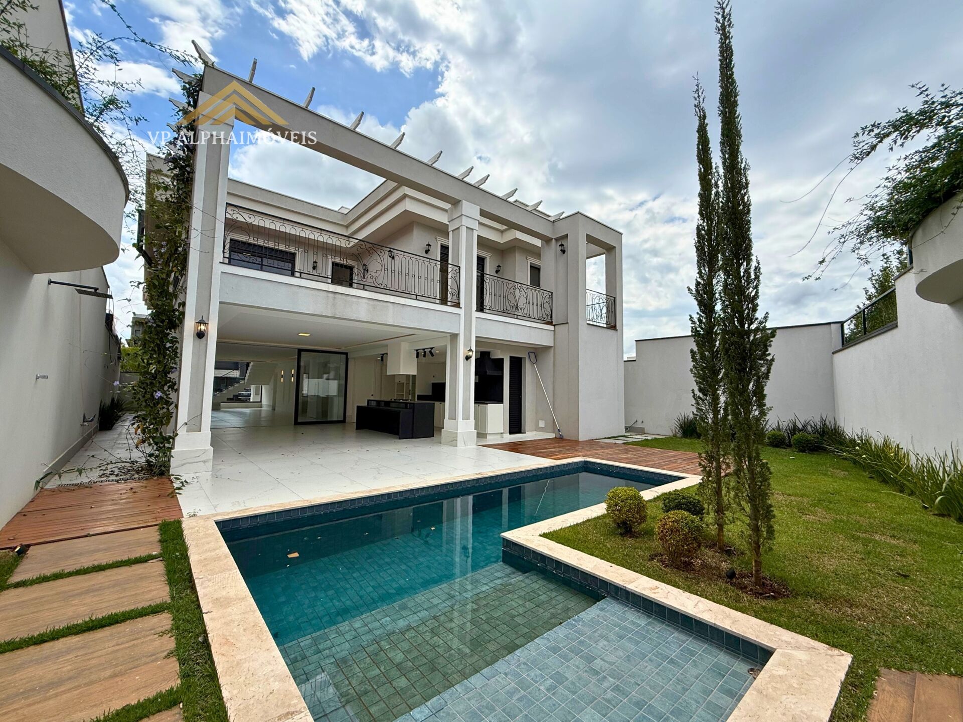 Conta ainda com área gourmet de 50 m², piscina, aquecimento solar e piso superior em madeira Ipê.\