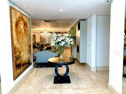 850 m² de área coberta, piscina, sala para dois ambientes, escritório, home, varanda gourmet climatizada, cozinha ampla, cinco suítes, garagem para seis carros, dependências para empregados.