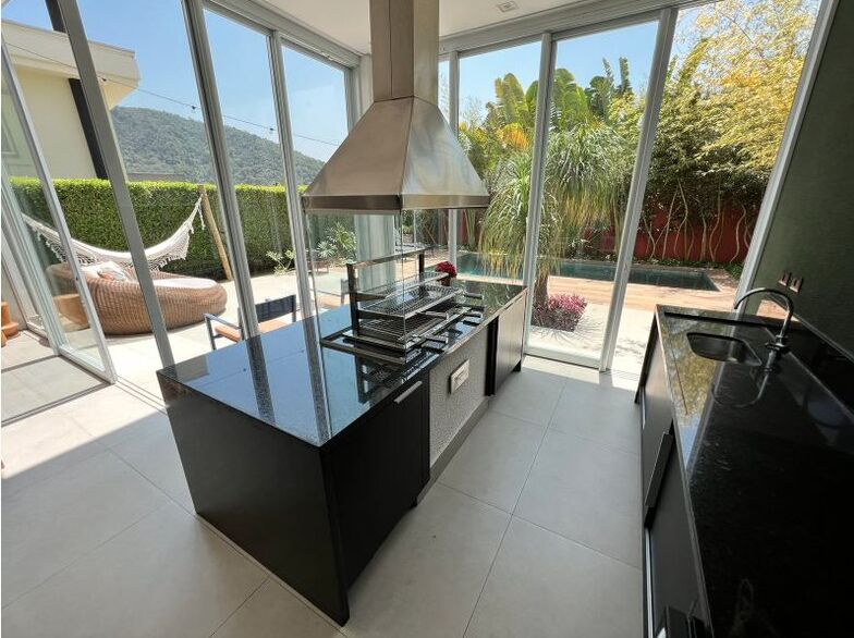Distribuída em 516m², os ambientes são integrados, super bacana no dia a dia e no momento de receber as visitas;