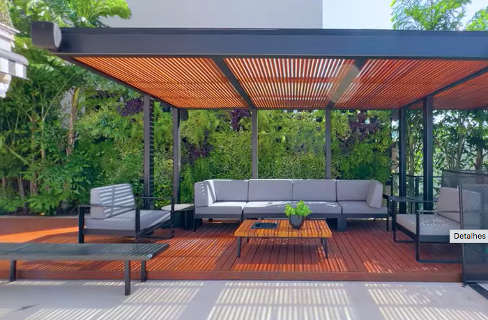 Área de lazer completa com piscina aquecida e hidro, além de pergolado para contemplar o pôr do sol.