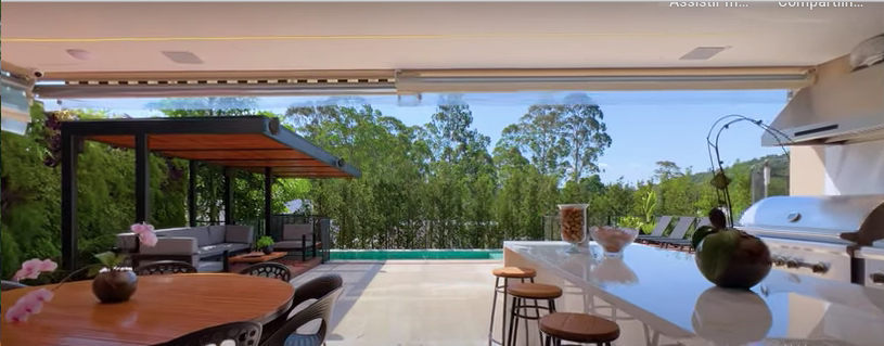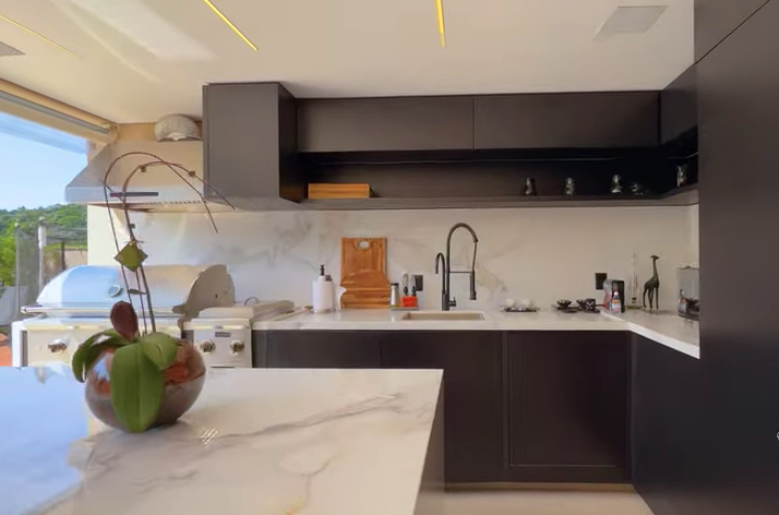 Espaço gourmet com vista para mata preservada.