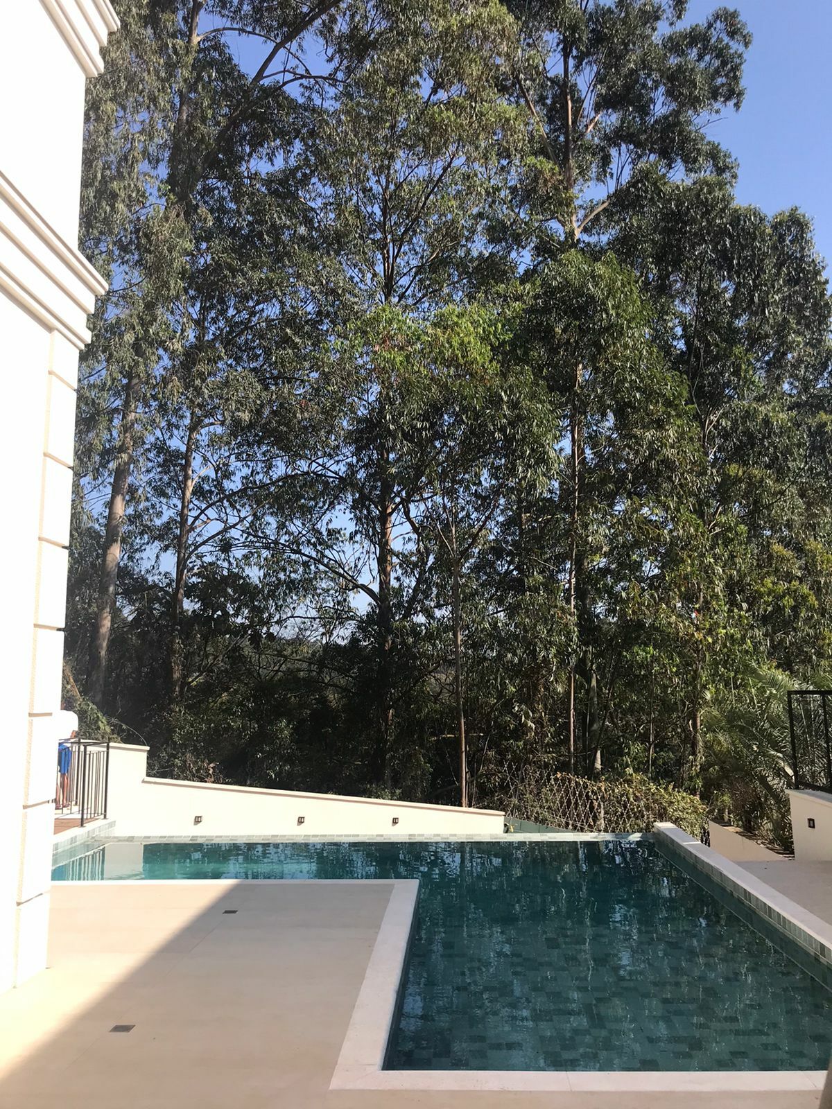 O paisagismo ainda será melhorado e os Eucaliptos do fundo foram retirados e a vista ficou diferente do que está na foto
